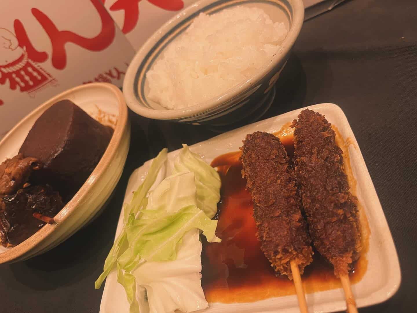 串カツやみそおでんを、ビールやハイボールで美味しく頂けます。人気メニューがお得なお値段で楽しめるセットです。特製のどて煮もご飯やお酒によく合いますので、是非お立ち寄り下さい。
