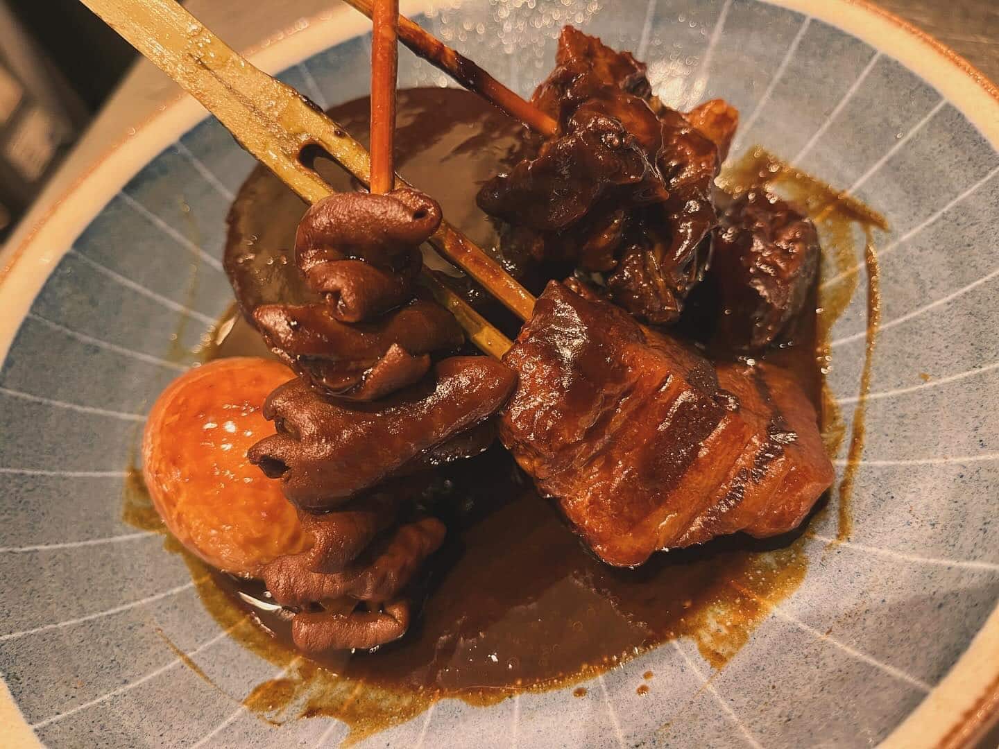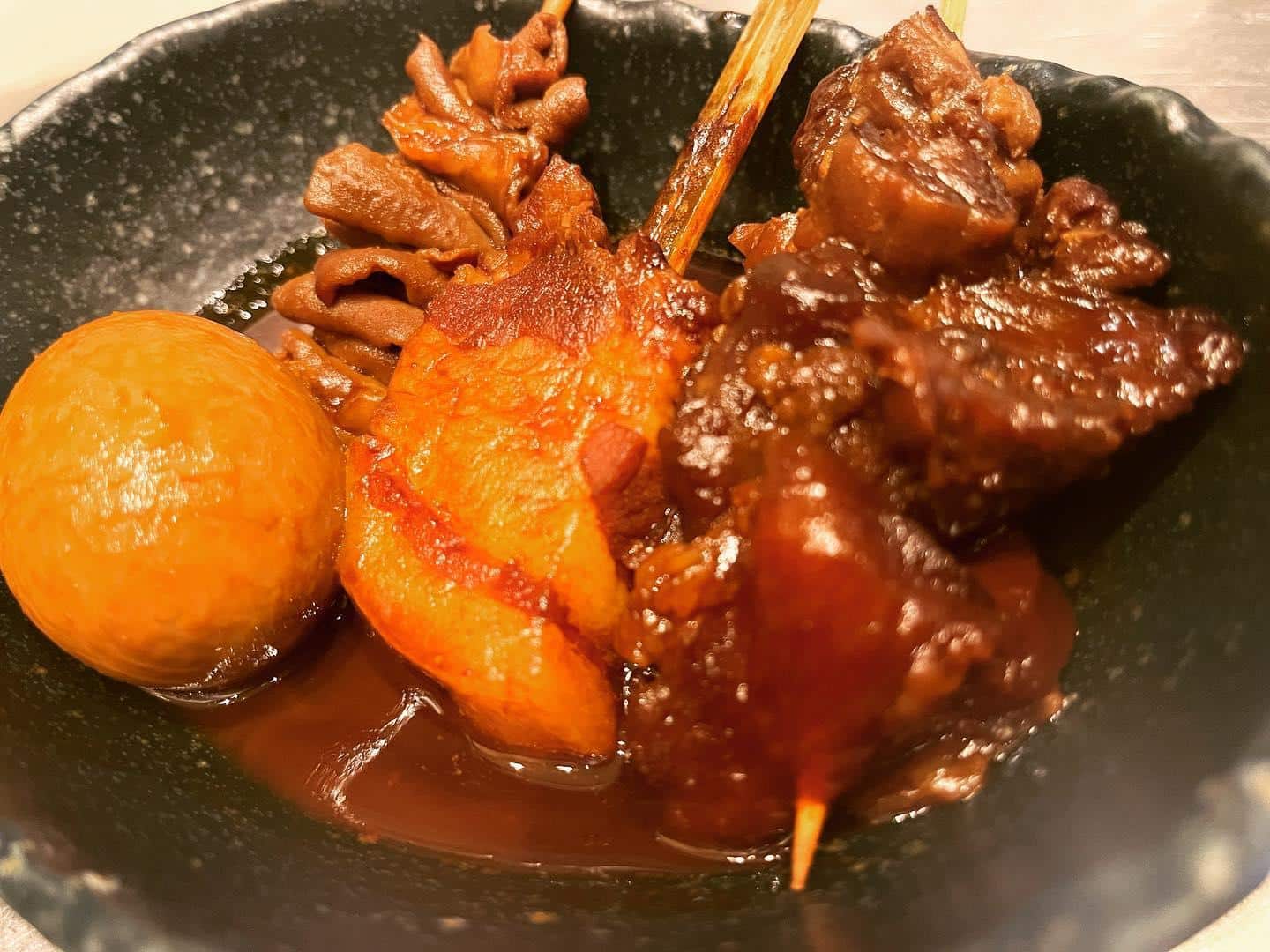 秘伝の味噌だれでじっくり煮込んだアツアツのおでんと冷たいビールは手が止まらなくなる組み合わせ。